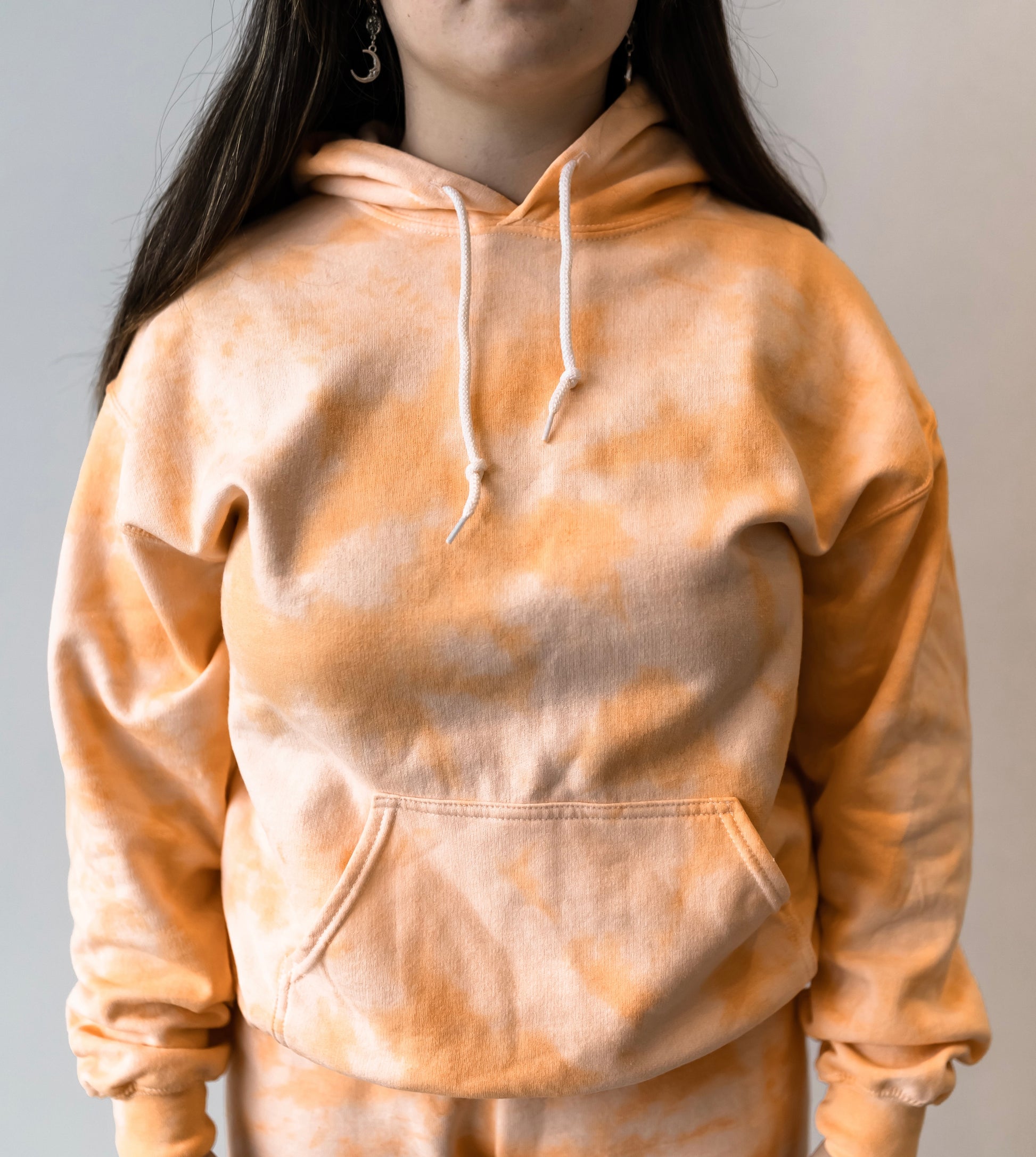 Our creamsicle orange tie dye sweatshirt is the perfect must add to your closet. Add this pullover sweatshirt to your daily routine for the coziest days. Get it cropped or full length because with us, you always have options.